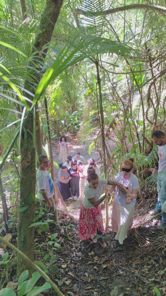 Nesta vivência, guiados pela força da Ayahuasca e pelo Sagrado, ao caminhar de olhos vendados, iremos sondar o invisível, o Grande Mistério – na mata e em de nós mesmos …