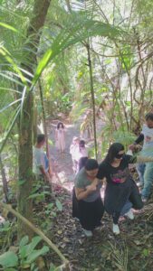 Realização de trilha na mata com trechos de contemplação sensorial e de caminhada moderada.